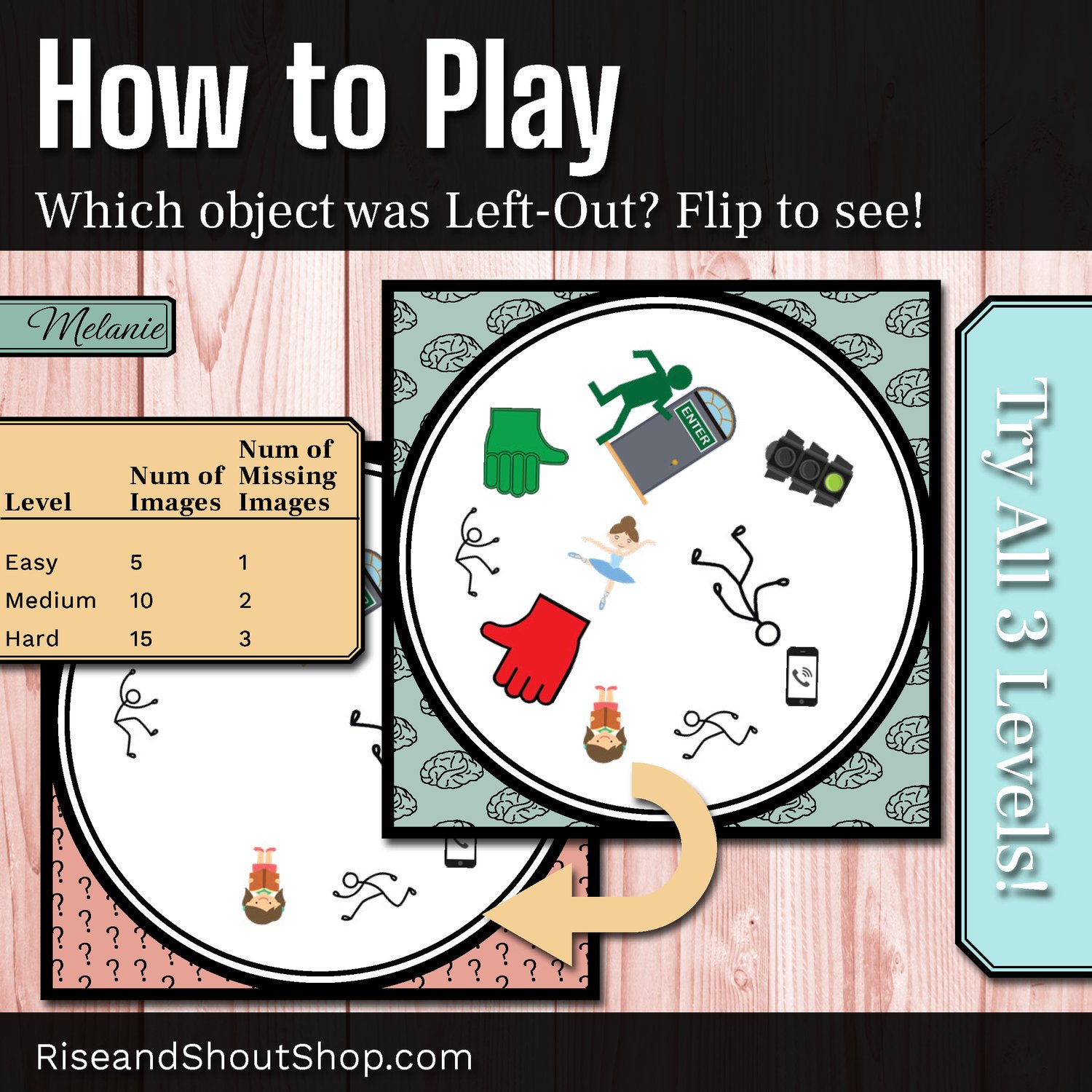 Language-vocabulary acquisition, cognitive development–memory skills, oral processing.Challenge yourself and others to Left-Out by recalling what is left-out in paired cards. Perfect for learning the names of different kinds of weather for preschoolers and kindergarteners or for learning the names in a foreign language for any age student. Adaptable to virtual learning.